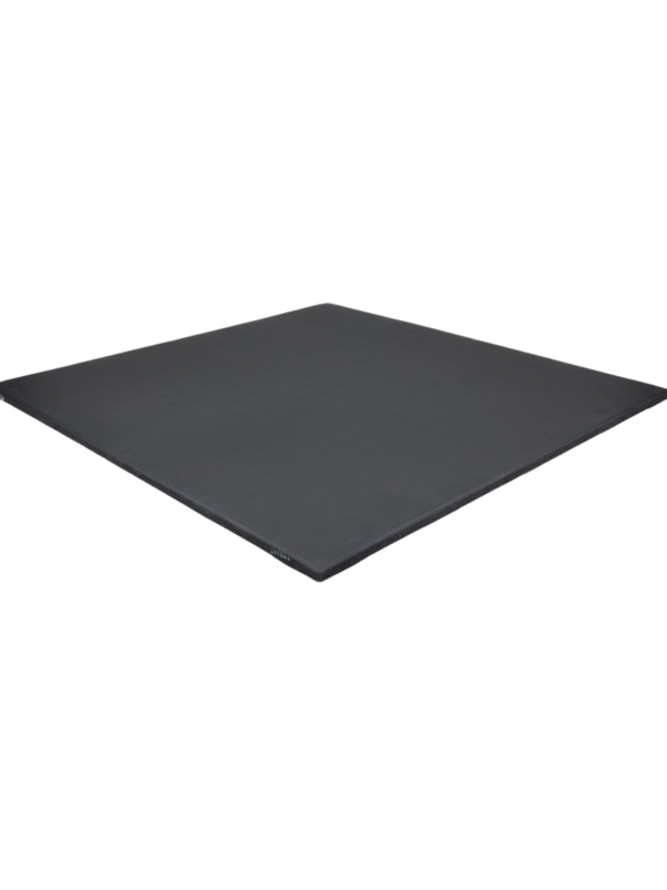 Losetas amortiguadoras en caucho negro de doble capa (compacta + acabado ultraliso) comprimidas, de 100cm x 100cm, diseñadas especialmente para el CrossFit: el revestimiento de suelo ideal para equipar salas de deporte, crossfit, fitness y gimnasios en casa. Muy densas (950kg/m³), estas losetas absorben y amortiguan el impacto de la caída de las pesas. Aspecto totalmente liso en superficie, para facilitar el mantenimiento y la limpieza. Estas losetas no pierden el grano con el uso.