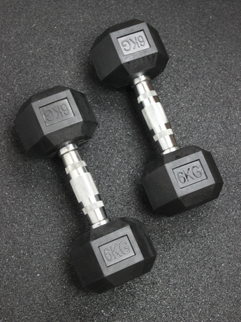 Mancuerna hexagonal de goma Pallini negra con mango de acero.