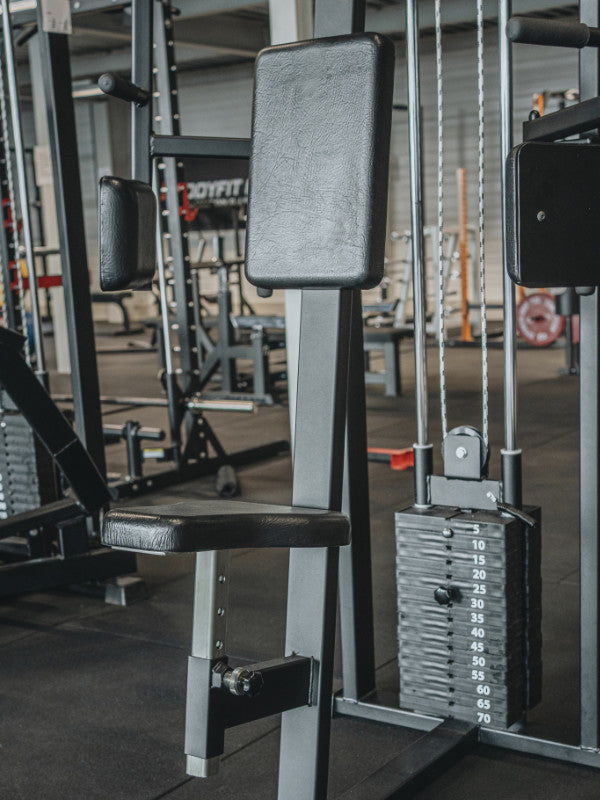 Esta máquina permite trabajar el pectoral mayor y el deltoides anterior mediante movimientos de abducción del brazo. La rotación del brazo contrae los músculos pectoral menor y mayor.
