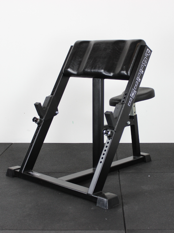 Banco de curl de bíceps que le permite trabajar el ejercicio "Larry Scott" apuntando a los músculos bíceps con tapizado moldeado para mayor comodidad.