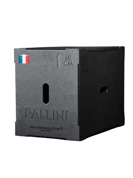 La caja de salto Bulle d'air® tiene las mismas características que una caja de salto de madera. La única diferencia es su material de polipropileno expandido (EPP). Esto reduce el riesgo de lesiones en la espinilla y elimina el efecto de resonancia. Esta caja de salto es un 65 % más ligera que una caja de madera (24 kg la de madera frente a 8,4 kg la de esta).